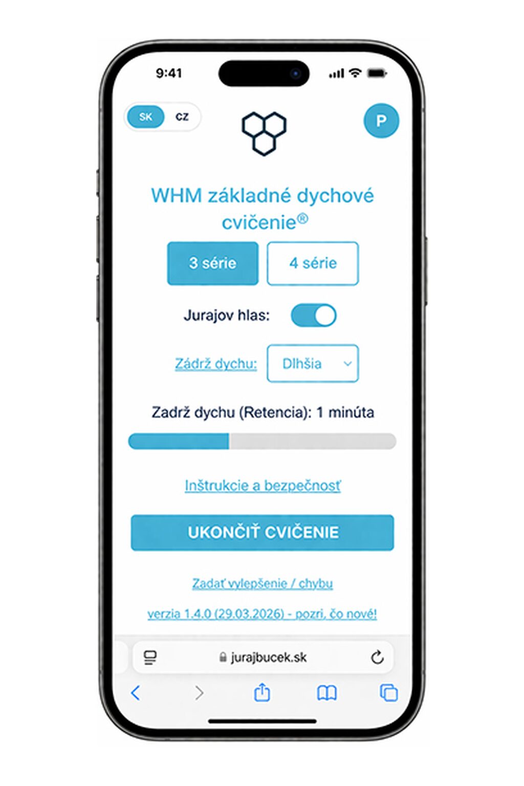 Môžeš si vybrať optimálnu dĺžku cvičenia: 3 alebo 4 série, zapnúť či vypnúť sprievodný hlas, nastaviť dlhšiu alebo kratšiu zádrž dychu podľa aktuálnej situácie.